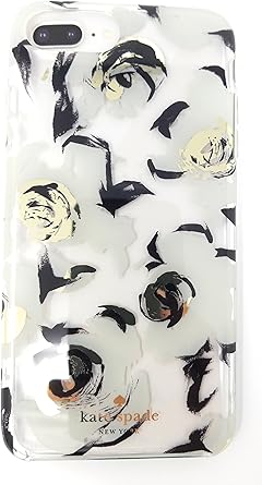 Kate Spade New York Protective Rubber Case For Iphone Black White Champagne Floral With Champagne Logo Iphone 8 Plus7 Plus6s Plus6 Plus